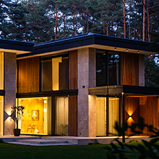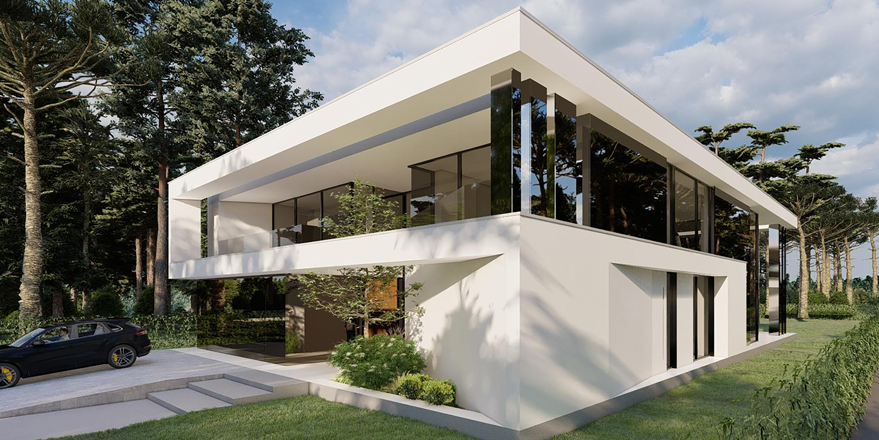Dom Modny to nowoczesna rezydencja, w której biała elewacja działa jak idealnie skrojone ubranie, otulające ciemny rdzeń budynku symbolizowany przez panoramiczne przeszklenia. Inspiracją była filozofia Issey Miyake – swoboda ruchu i lekkość, które odnajdują swoje odbicie w dynamicznej bryle, subtelnych cięciach i precyzyjnych detalach. Od strony ogrodu dom otwiera się na naturę, całkowicie przeszkloną fasadą, zacierając granicę między wnętrzem a otoczeniem.